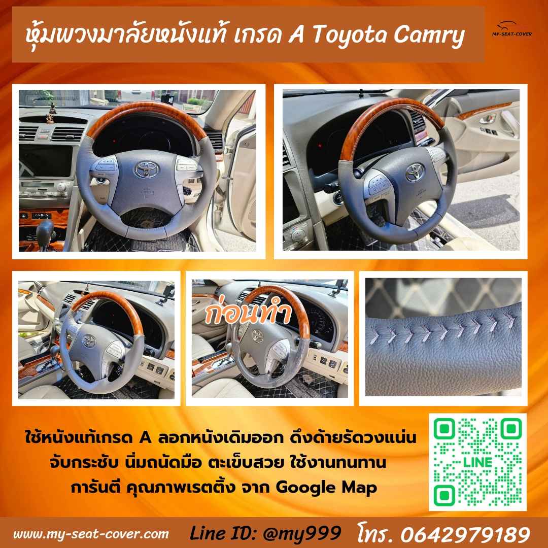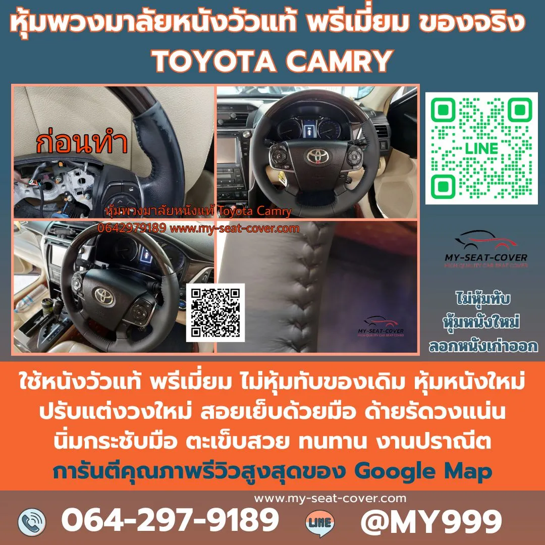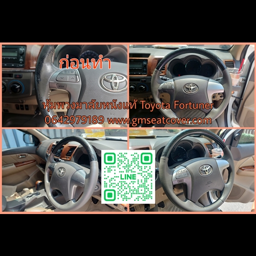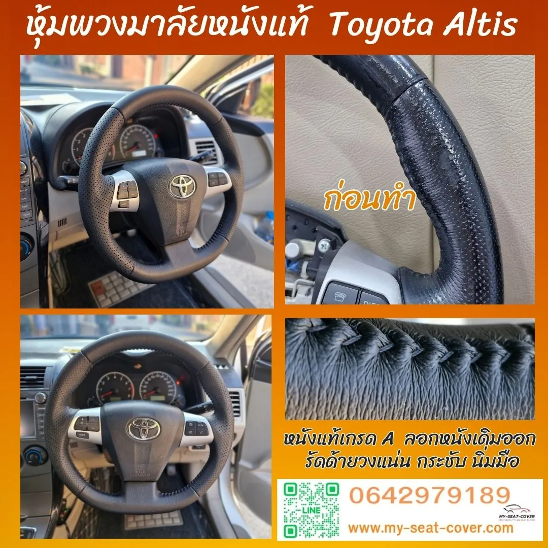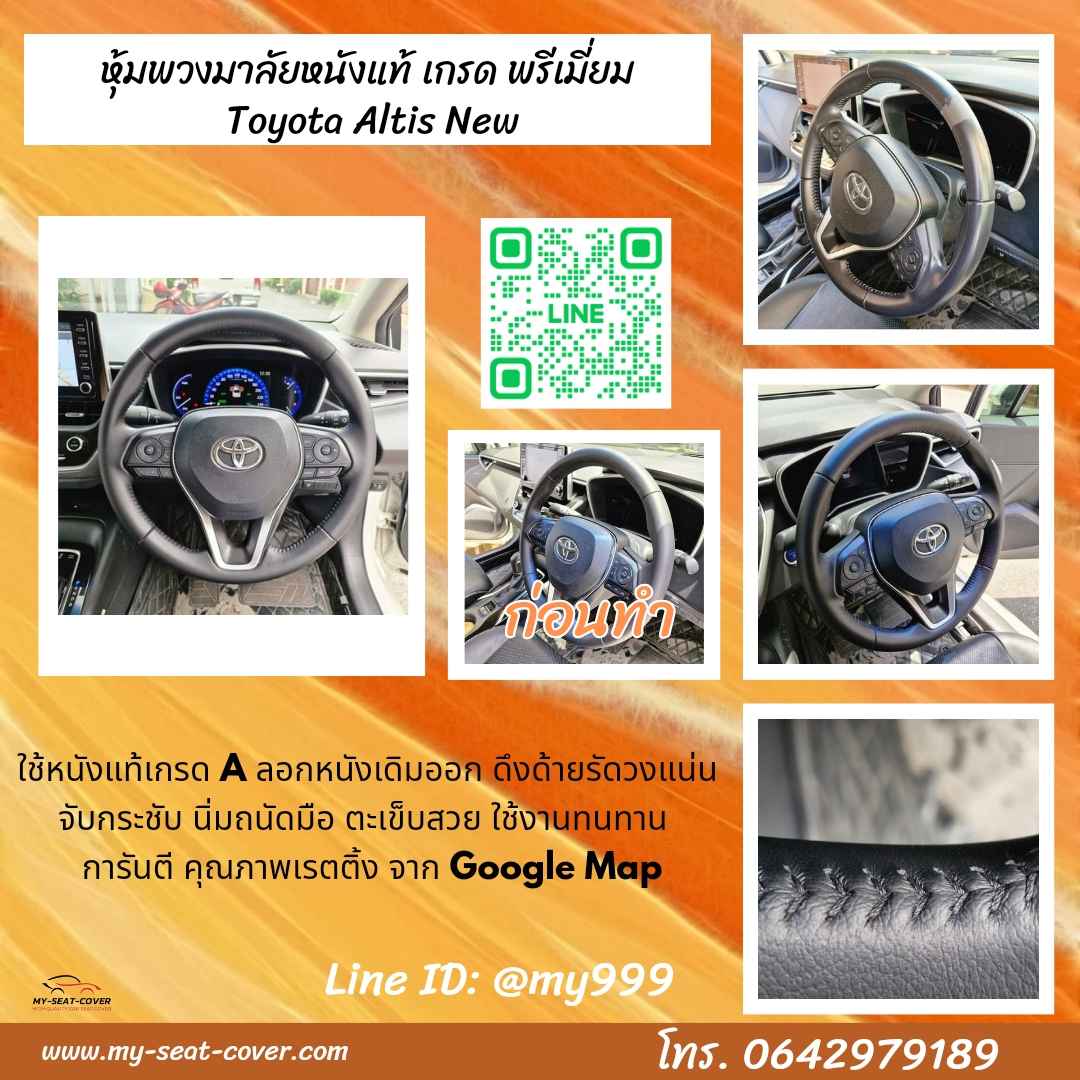 รีวิวผลงานหุ้มพวงมาลัยหนังแท้ 100% หุ้มหนังพวงมาลัยหนังแท้ Toyota