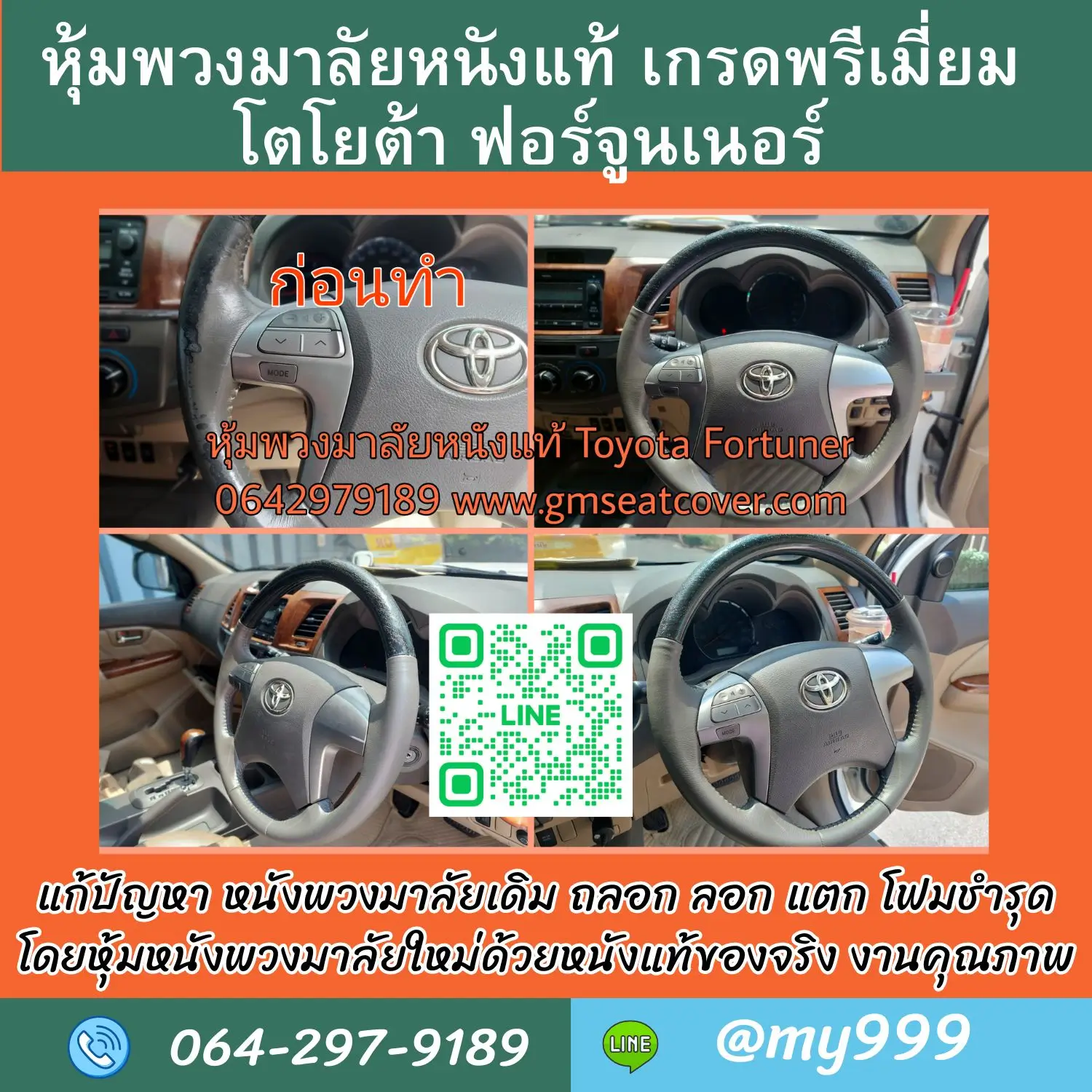 พวงมาลัย Toyota พวงมาลัยหนังลอก ถลอก แตก ขาด เปี่อย สีลอกซีด แก้ไขได้ ร้านเปลี่ยนหนังหุ้มพวงมาลัยใหม่ หุ้มพวงมาลัยใหม่ ซ่อมพวงมาลัยลอก หุ้มด้วยหนังวัวแท้ของจริง