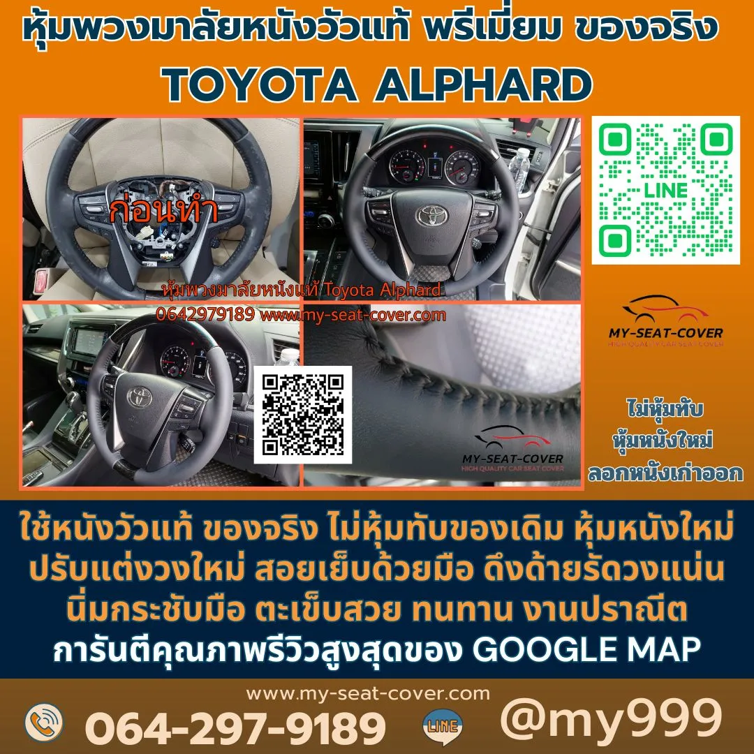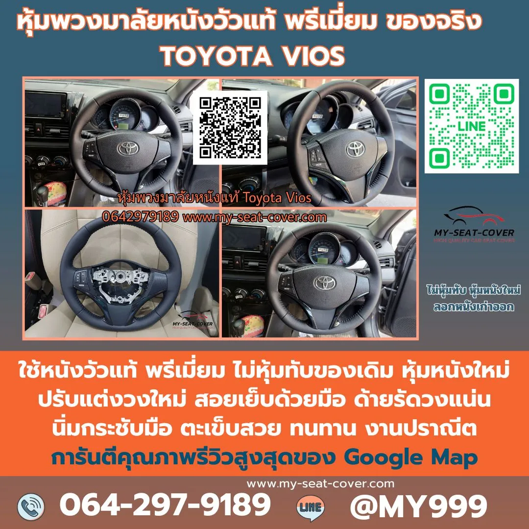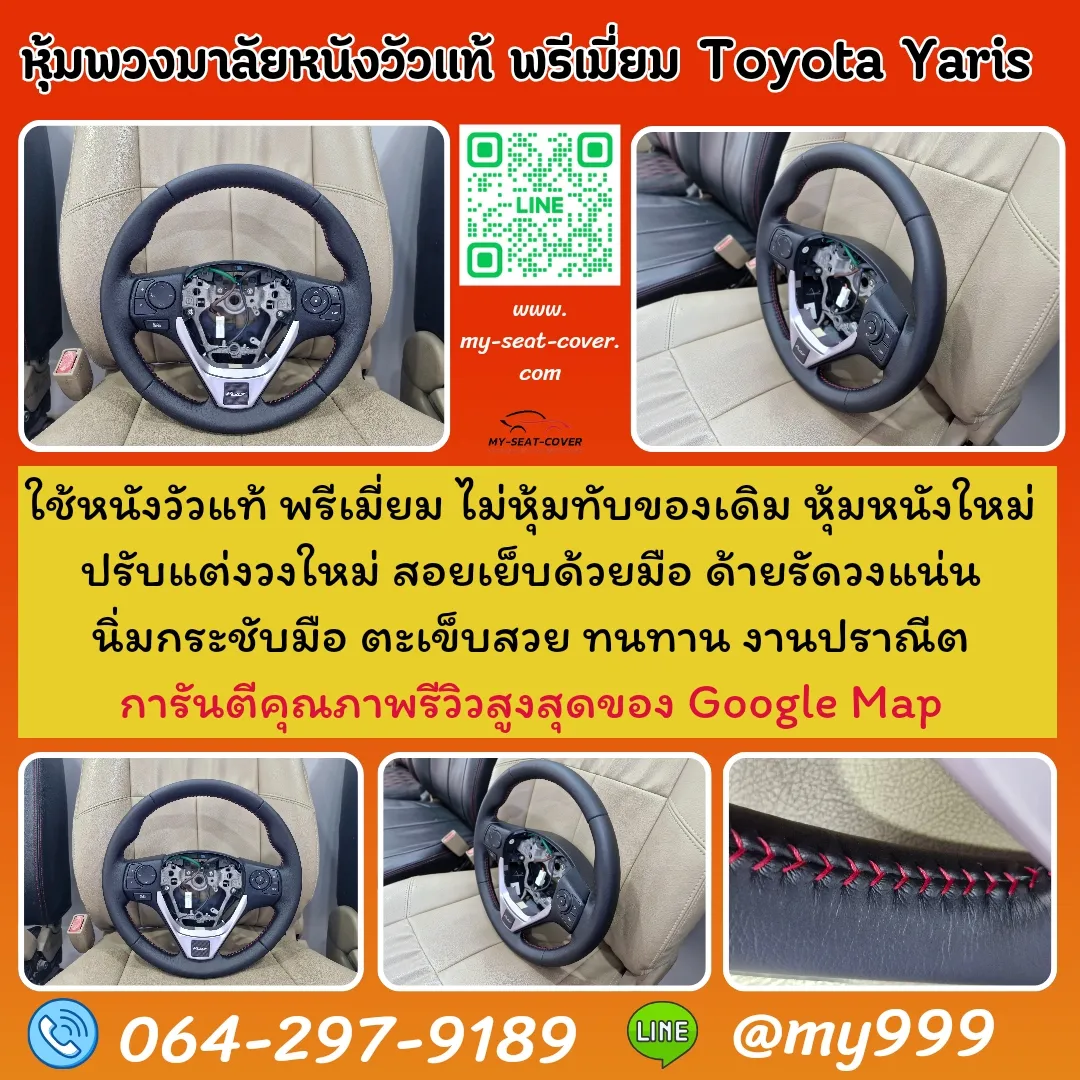 รีวิวผงลานหุ้มพวงมาลัยหนังแท้ 100% คัดเกรด Toyota ทุกรุ่น ร้าน มายซีส หุ้มพวงมาลัยหนังแท้นนทบุรี ร้านรับทำที่หุ้มพวงมาลัยรถยนต์ ทำหนังหุ้มพวงมาลัยหนังแท้ เย็บพวงมาลัยรถยนต์ สอยพวงมาลัยรถยนต์ ซ่อมพวงมาลัย ซ่อมพวงมาลัยลอก ซ่อมพวงมาลัยแตก พวงมาลัยสีซีด หุ้มพวงมาลัยโตโยต้า ทางร้านจะลอกหนังเก่าออกก่อนและแต่งวงพวงมาลัยให้ก่อน แล้วจึงหุ้มหนังแท้ใหม่แทน สอยเย็บด้วยมือเหมือนรถยุโรป ด้วยช่างที่ชำนาญงานและมีฝีมือ ทางร้านจะไม่หุ้มทับเหมือนที่อื่นๆ หุ้มพวงมาลัยรถยนต์ของ โตโยต้า ทุกรุ่น เช่น หุ้มพวงมาลัยหนังแท้ Toyota Yaris, หนังหุ้มพวงมาลัย Toyota Sienta, หุ้มพวงมาลัย Toyota Vellfire, พวงมาลัย Toyota Alphard, หุ้มหนังพวงมาลัย Toyota Vios, สอยหนังพวงมาลัย Toyota Altis, เย็บหนังหุ้มพวงมาลัย Toyota Harrier,Toyota camry, Toyota Fortuner เป็นต้น ร้านรับหุ้มพวงมาลัยรถยนต์หนังแท้ใกล้ แม็คโครพระราม 5 ใกล้บางใหญ่ ใกล้บางบัวทอง หมู่บ้านนนทรี4 ด้านหลังแม็คโครพระราม 5 นครอินทร์ ใกล้ราชพฤษ์และบางกรวย รับหุ้มหนังพวงมาลัยใหม่