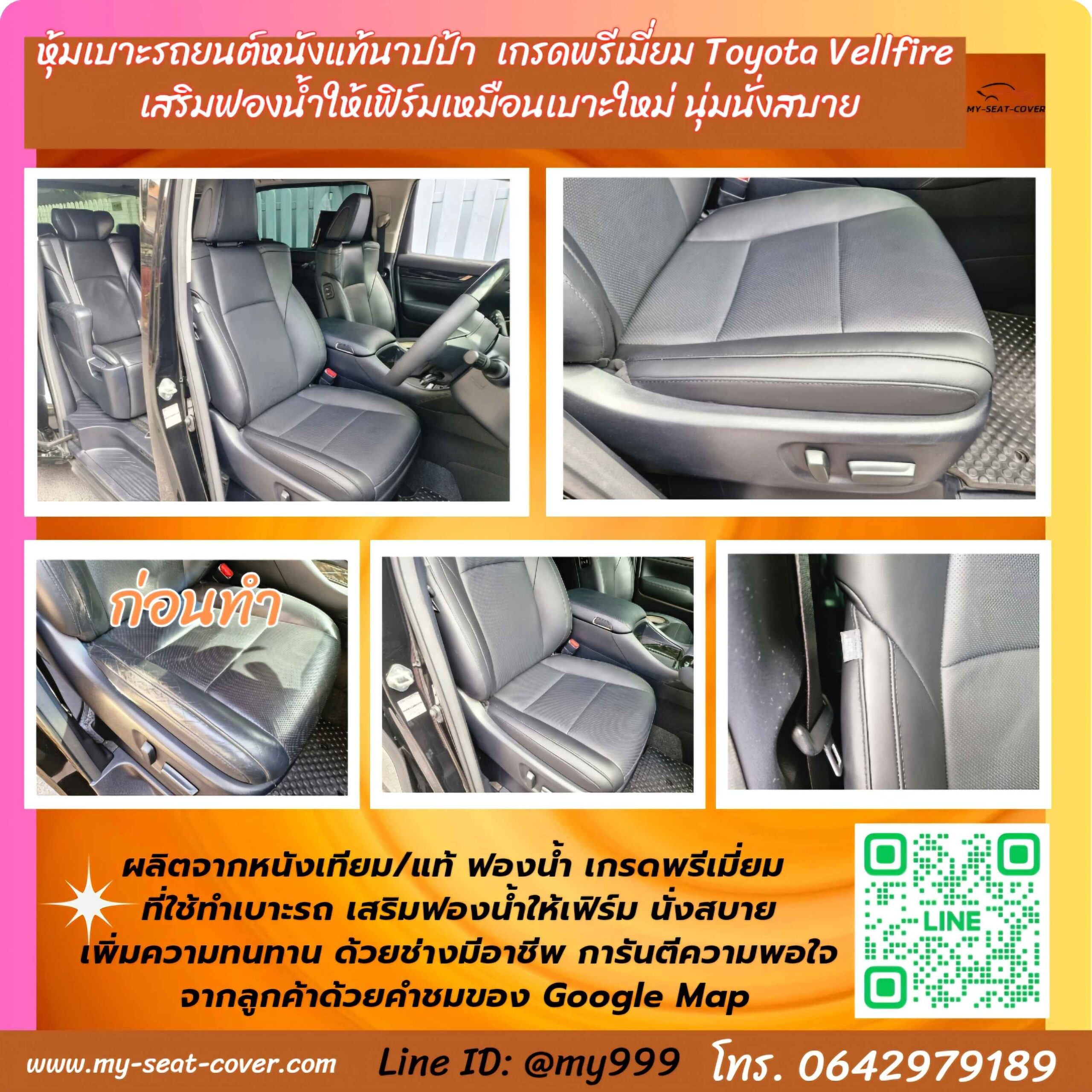 รีวิวผลงานหุ้มเบาะรถยนต์ ร้านรับทำ หุ้มเบาะรถยนต์แบบถาวร หุ้มเบาะรถยนต์หนังแท้ หุ้มเบาะรถยนต์หนังเทียม เสริมแต่ฟองน้ำให้เฟิร์มเหมือนเบาะรถยนต์ใหม่เหมือนออกกับโชว์รูม ตัดเย็บด้วยวัสดุเกรด A เบาะหนังเทียม ใช้สำหรับทำเบาะหนังรถยนต์โดยเฉพาะ เบาะหนังแท้ ใช้เกรด พรีเมื่ยม นอกจากนี้ร้านยังรับทำ เปลี่ยนผ้าหลังคารถยนต์ หรือ กรุผ้าหลังคารถยนต์ ด้วยการใช้ ผ้าบุหลังคารถยนต์ที่กันความร้อน เกรดที่ใช้ทำ Benz และ BMW หุ้มพวงมาลัยรถยนต์หนังแท้ หรือ หนังหุ้มพวงมาลัยหนังแท้ เย็บพวงมาลัยรถยนต์ รับหุ้มแผงข้างประตูรถยนต์ เป็นต้น สอบถาม โทร. 064-297-9189 / ไลน์ ไอดี 0642979189 แผนที่ร้าน https://bit.ly/3u6m6Xc